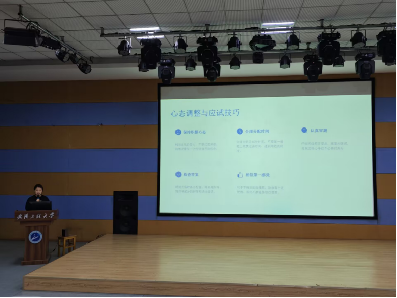 随后,23级优秀考生代表依次上台分享备考心得。孙晶晶、李紫轩、梁家琦、罗雨彤四位学姐立足自身备考实践,从题型拆解分析、答题时间规划、各模块解题策略及考试心态调适等维度展开分享,针对不同题型的重难点与应试技巧,结合实战案例讲解了高效备考方法与优质学习资源。四位学姐均呈现了严谨细致的备考规划与执行方案,她们科学的备考思路、扎实的应试能力与从容的应考心态,让在场同学深受启发、收获颇丰。