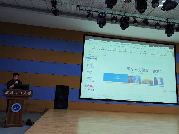 大会特别邀请武汉市语源信息咨询有限公司、知日教育、一火跨境电商、武汉上深电子商务有限公司、武汉未玩之境科技有限公司、武汉宝齐莱商贸有限公司等14家企业代表到场宣讲。各企业从业务布局、实习岗位、培养体系及就业前景等维度展开介绍,覆盖教育、翻译、跨境电商、语言技术服务等多个领域,为学生提供多元化选择空间。其中,厦门亿学教育集团作为一家针对“英语+市场营销”复合型人才培养的企业,由英语教研室副主任张云峰老师重点推介,其“语言+商业实践”双轨制实习方案引发E+专业学生广泛关注。一火跨境电商将培养学生成跨境电商主播。这些主播将利用语言和文化优势,在TikTok等平台上向国外消费者带货,成为连接“中国制造”与海外市场的桥梁。